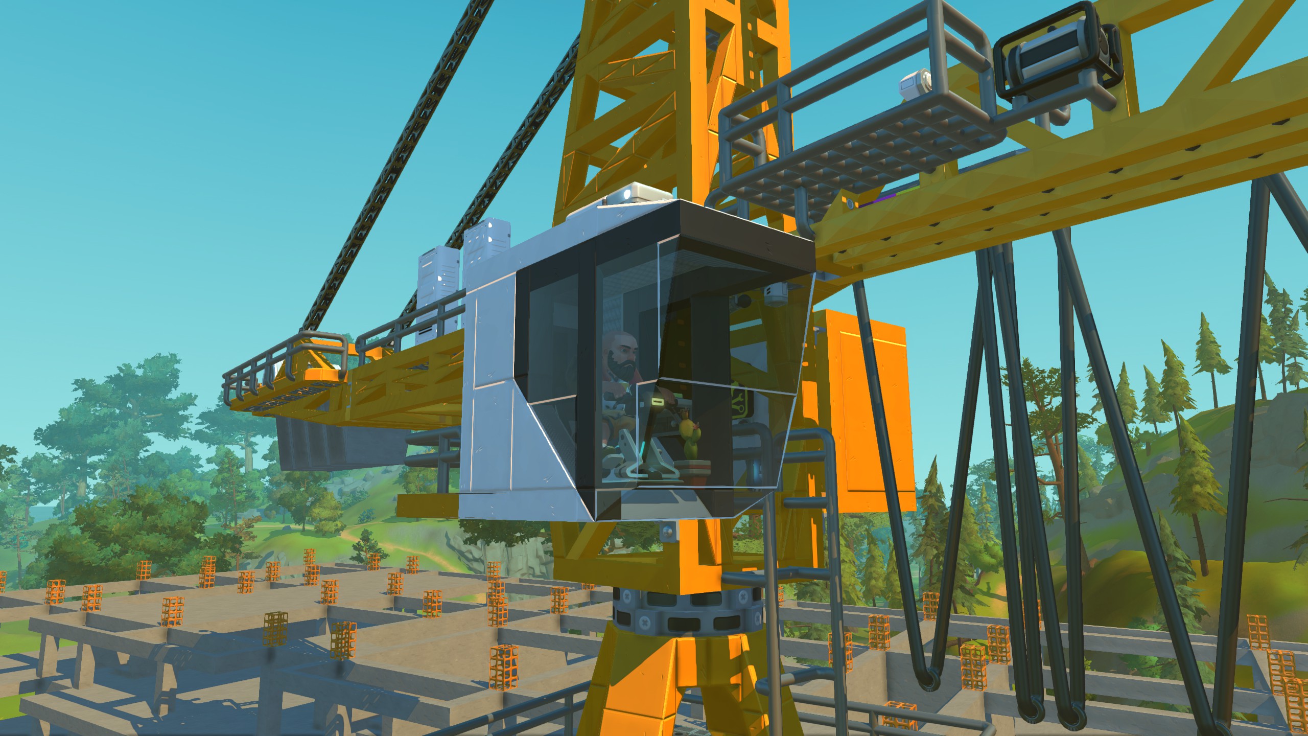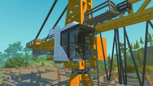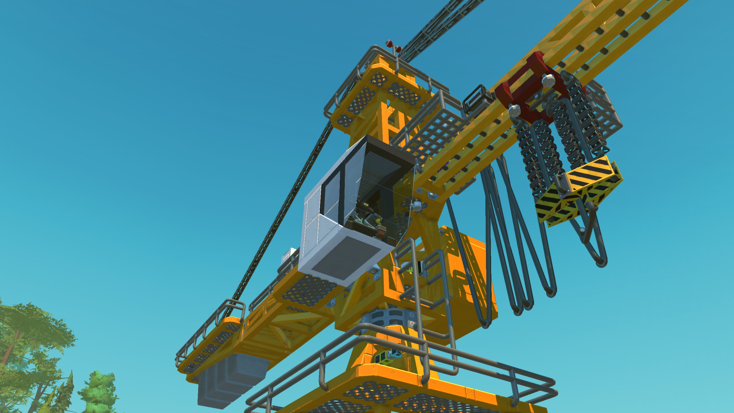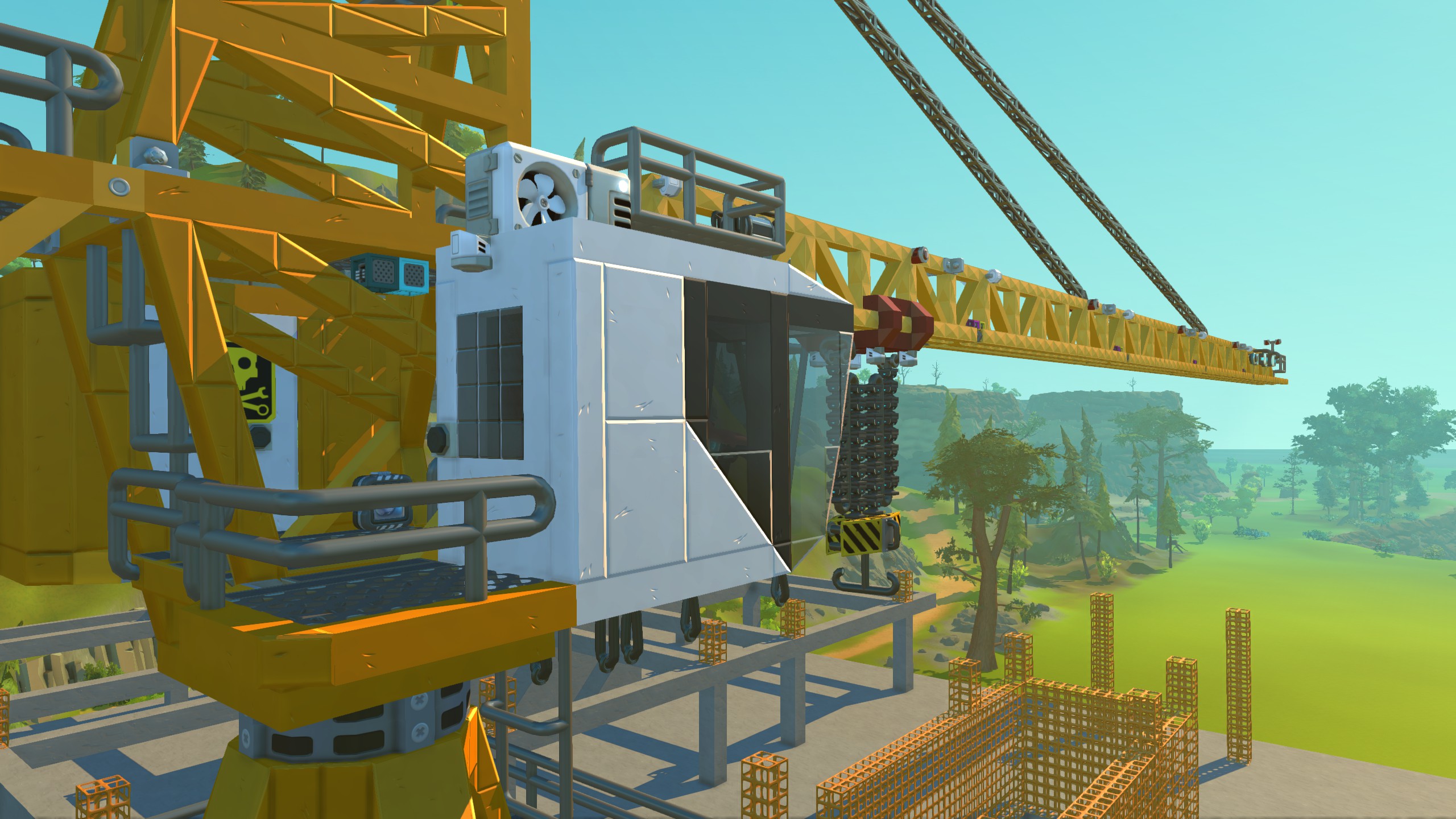 Секции стрелы имеют блоки гаек (Nut blocks) на пути рельса для тележки. Они служат разделителями, позволяя тележке плавно скользить по ним. Также, если трубы, подключенные к тележке, опустятся ниже уровня рельсов, вы можете вытянуть их обратно, переместив тележку до самого конца стрелы — трубы пройдут сквозь блоки гаек без необходимости перестраивать кран или ставить его на лифт.
