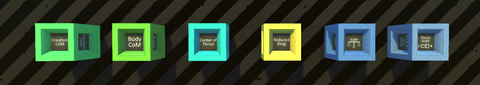 Показывает вектор тяги всех стандартных трастеров на объекте в центре тяги.