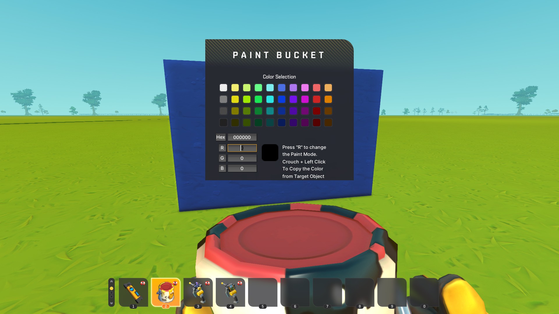Ведро с краской (раскраска всего или по типу блока одним кликом, доступно все 16 миллионов цветов)