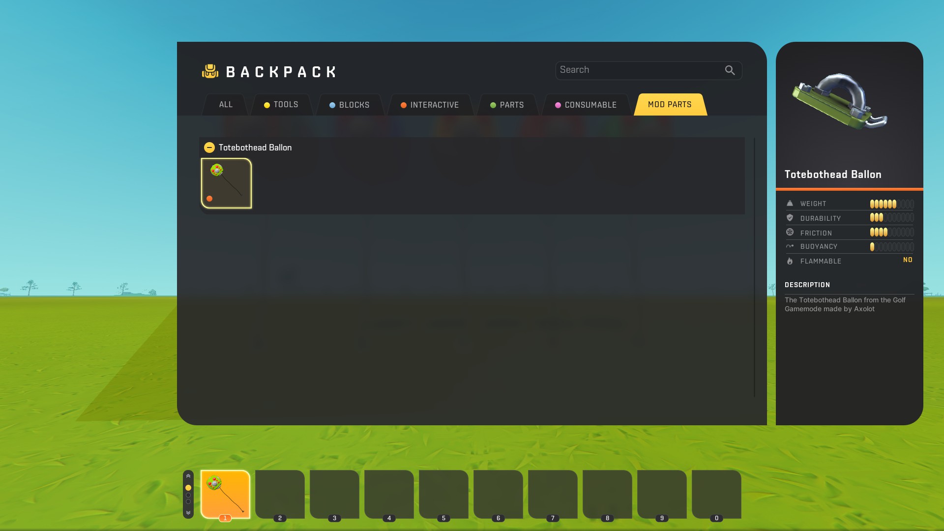Этот мод добавляет шар в стиле головы Totebot из режима игры в гольф (созданный Axolot).